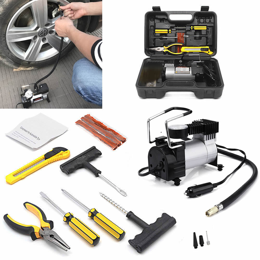 1 x Dual Cylinder Air Compressor with Car Tire Repair Kit