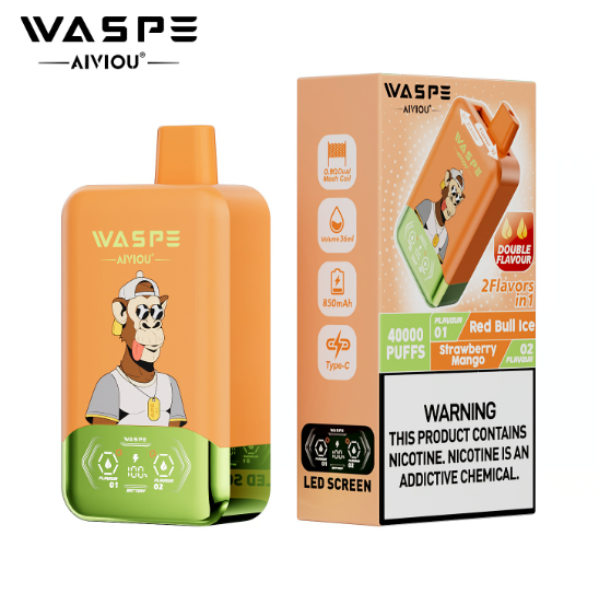 1 x Waspe 40,000 Puff Vape – Redbull, Mango and Strawberry Ice