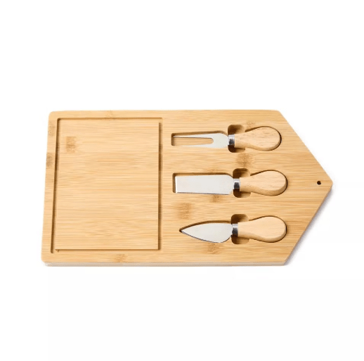 The bamboo cheese board set cuts all cheese with precision and without mess.