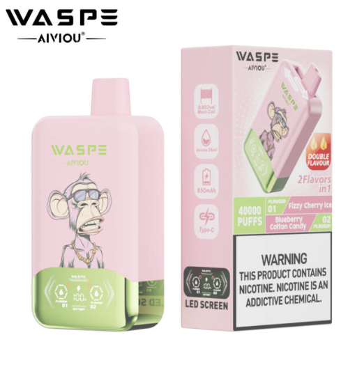 1 x Waspe 40,000 Puff Vape – Fizzy Cherry Ice and Blue Berry Cotton Candy